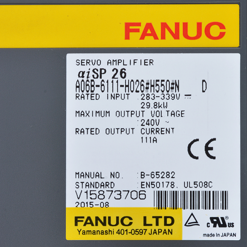 FANUC ડ્રાઇવ્સ A06B - 6111 - H026#H550#N FANUC αISP 26 સ્પિન્ડલ સર્વો એમ્પ્લીફાયર મોડલ